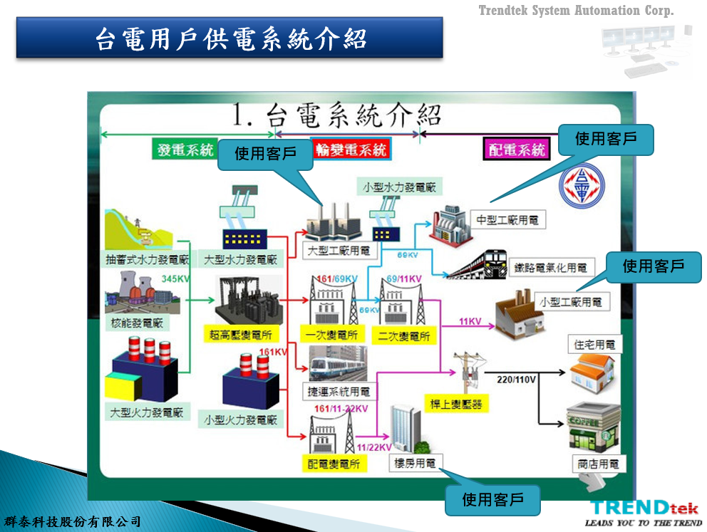 - 可對台電超高壓/高壓電力1000V /330千瓦電壓進行電力用量及設備監控。