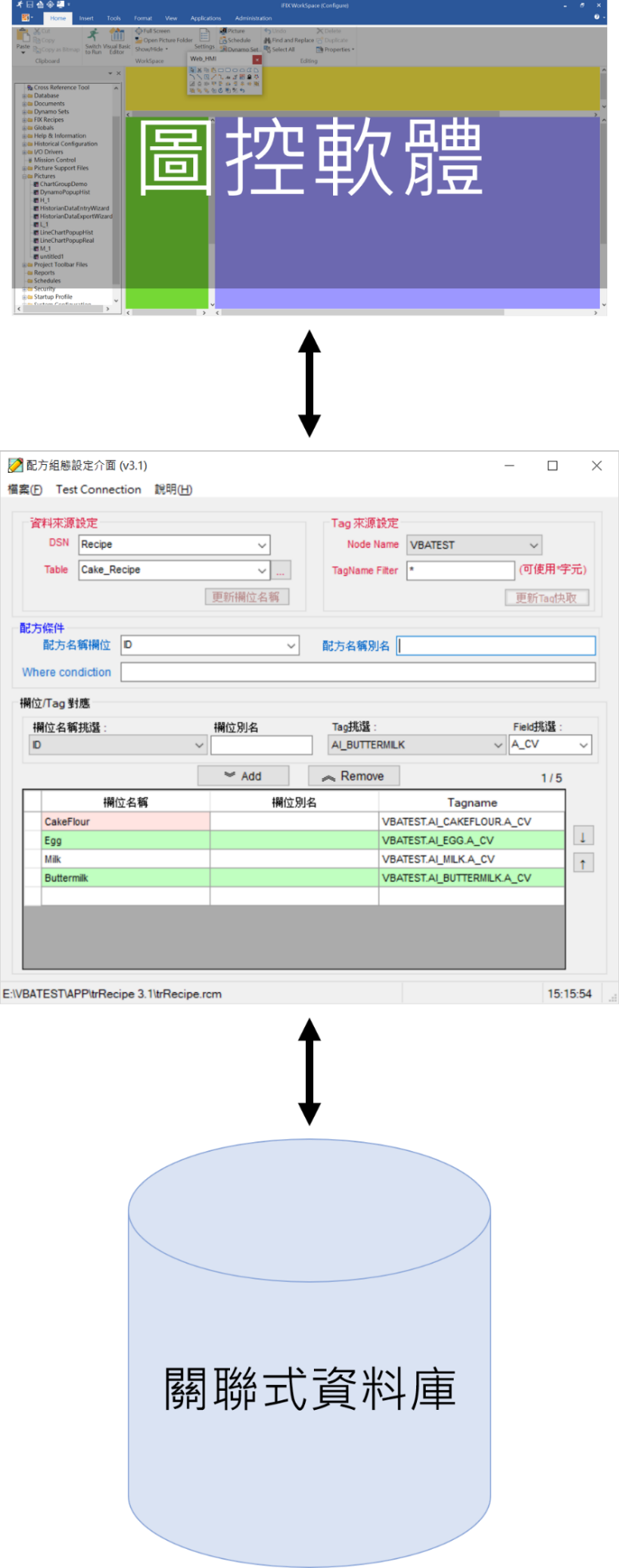 - 配方資料存放於關聯式資料庫內,方便查詢及修改。