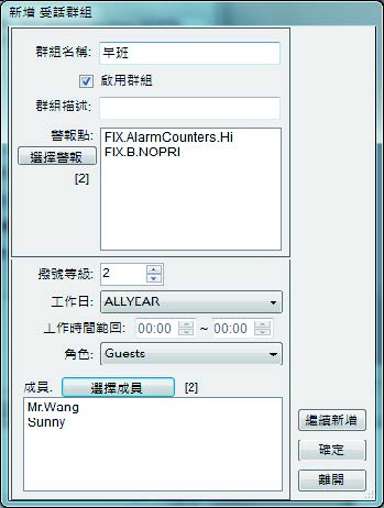 可依需求建立使用者群組,並依警報區域、工作時間傳送至個別群組